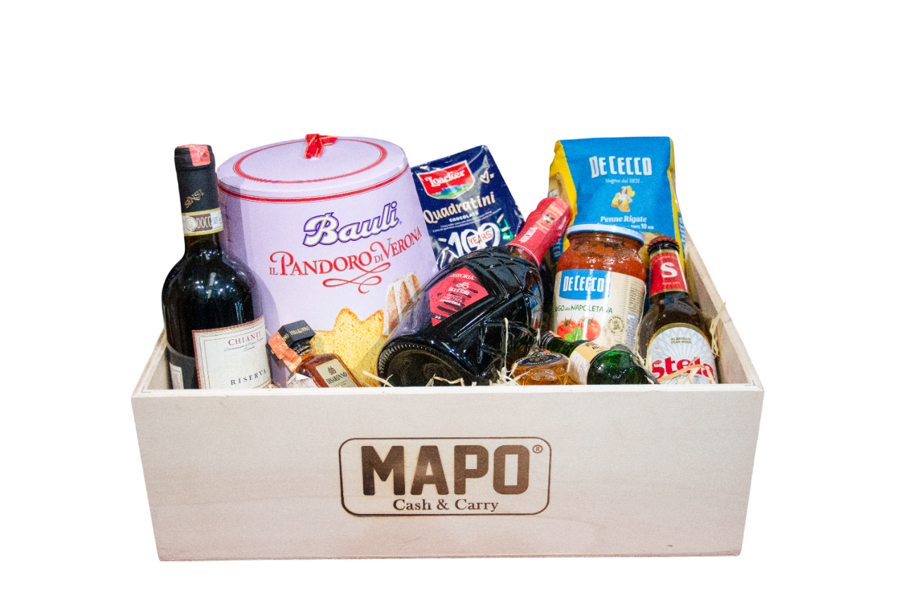 Një kombinim i rafinuar produktesh premium, krijuar për të dhuruar elegancë dhe shije të jashtëzakonshme. Kjo shportë përmban një trio likernash të mirënjohura italiane – Amaro Montenegro, Disaronno dhe Vecchia Romagna – të pasuara nga Astoria “Giro d’Italia” Spumante për momente feste. Produktet kulinare De Cecco (makarona dhe salcë Napoletane) ofrojnë bazën për një darkë tradicionale italiane, ndërsa Bauli Panettone sjell aromën klasike të fundvitit. Loacker Quadratini dhe Stela Lager shtojnë balancë mes ëmbëlsisë dhe freskisë. Shporta plotësohet me Sensi Chianti Riserva dhe një Revlon Lipstick Bombshell Red, duke e kthyer këtë paketë në një zgjedhje të veçantë, të ngrohtë dhe me karakter festiv.